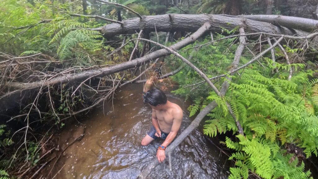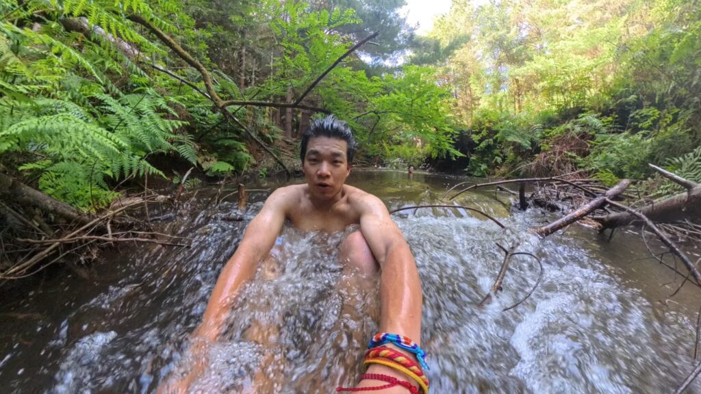 自然の中に流れる川にそのまま入るスタイルで、まさにニュージーランドらしいワイルドな野湯体験。